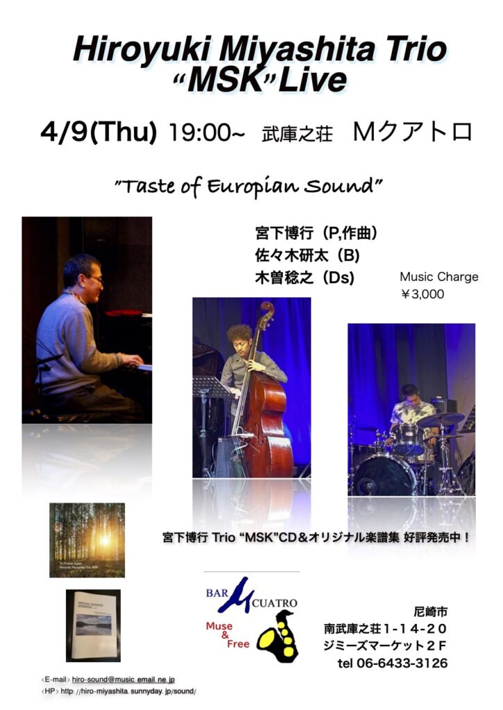 CDも絶賛発売中! H.Miyasita Trio”MSK” Live予定 (随時更新)