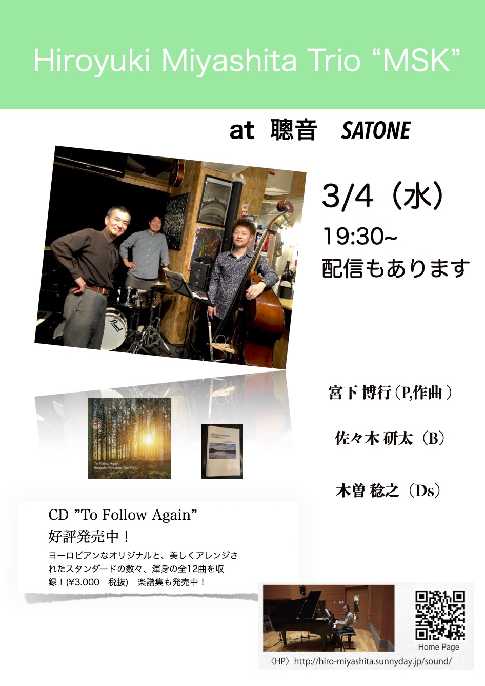 CDも絶賛発売中! H.Miyasita Trio”MSK” Live予定 (随時更新)