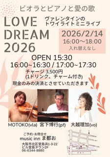 宮下博行 LIVE SCHEDULE カレンダー リスト « イベント一覧 このイベントは終了しました。 2/14( 土)16時〜北新地 ”ま都お” Vo大越理加、P宮下、他 2月 14日♪4:00 PM - 5:30 PM « 2/12(木)19:30関目ArteCoda “Trio#3 with 斎藤 敬司郎(B)、松田ゴリ広士(Ds) 2/15 (日) Pm 7:30~ 高槻ビリーズバウンス Yukimi(Vo)、宮下(P) » 数年ぶりの出演。ビオラの方も入ります。 2/14( 土)16時〜北新地 ”ま都お” Vo大越理加、P宮下、他 カレンダーに追加 Google カレンダー iCalendar Outlook 365 Outlook Live 詳細 日付: 2月 14 時間: 4:00 PM - 5:30 PM イベントカテゴリー: 3.ボーカルのライブ ライブスケジュールは決まり次第、更新していきます。